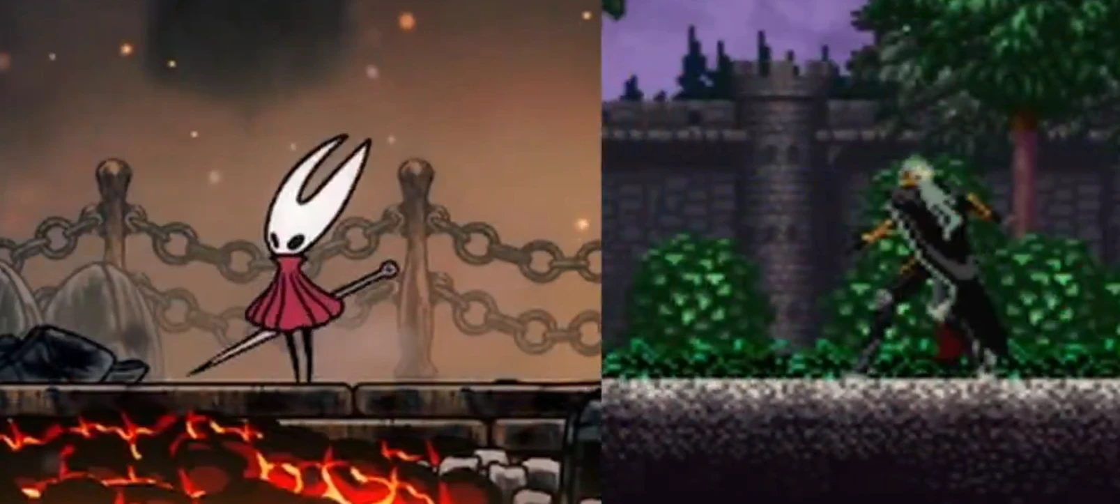 В своем сравнительном ролике автор расположил рядом движения Хорнет из Silksong и Алукарда из Castlevania Symphony of the Night. Прыжки, рывки, атаки - многое выглядит почти одинаково. По словам Pires, он собирался похвалить Silksong за схожие анимации, но при покадровом сравнении понял, что ощущение управляемости у героев фактически одинаковое, и ему это действительно по душе.
