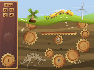 В процессе совместной работы с графикой проблем было не так много, как я ожидал. От leric приходил арт, строго совпадающий с моим представлением игры… Выходило отлично! В итоге мы быстро собрали первые уровни, обсудив общую гамму, расположение интерфейсных элементов, а также декоративных неигровых изображений вроде скелетов динозавров или же шахты рудокопа :) Все было очень классно!